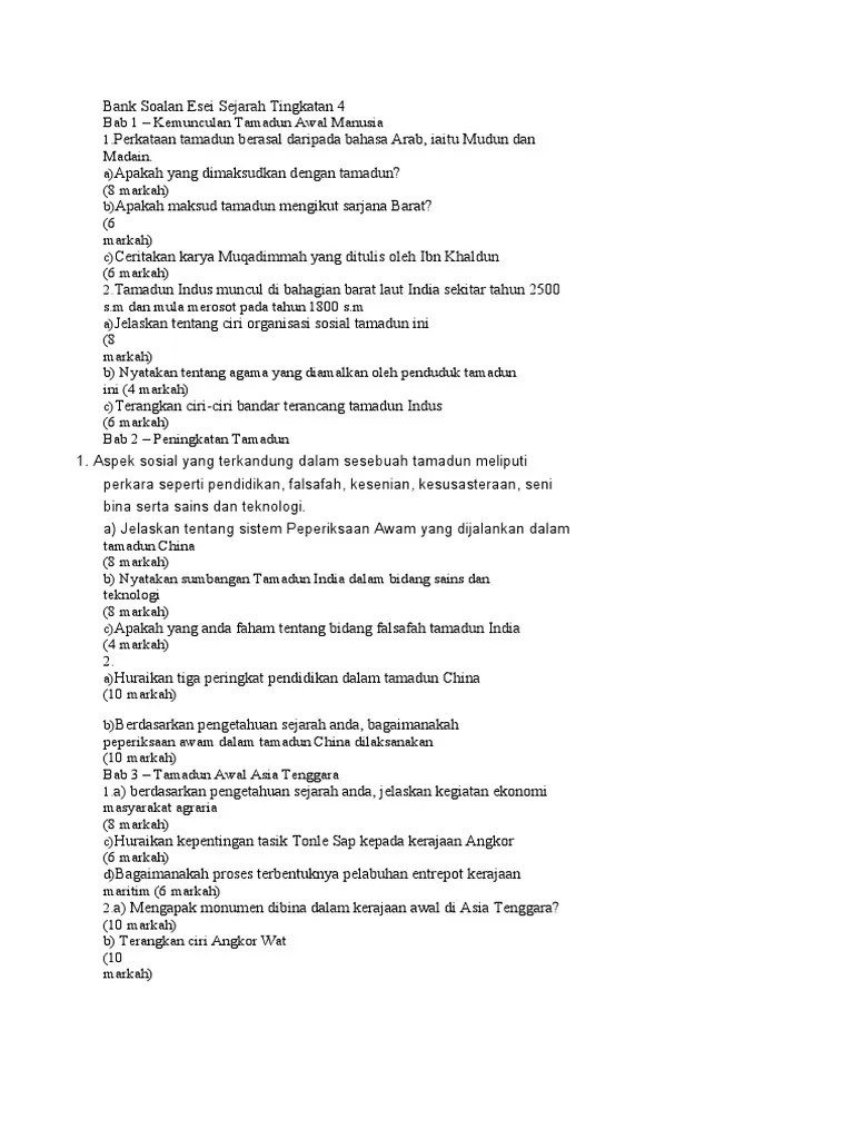 Soalan sejarah tingkatan 4, 5, spm (objektif, esei, struktur) + skema jawapan (kssm). Soalan esei sejarah tingkatan 4 bab 3 resepi book e . ١٠ ذو القعدة ١٤٤٣ هـ. Soalan esei sejarah tingkatan 4 bab 4 kertas 3 zhantigel.